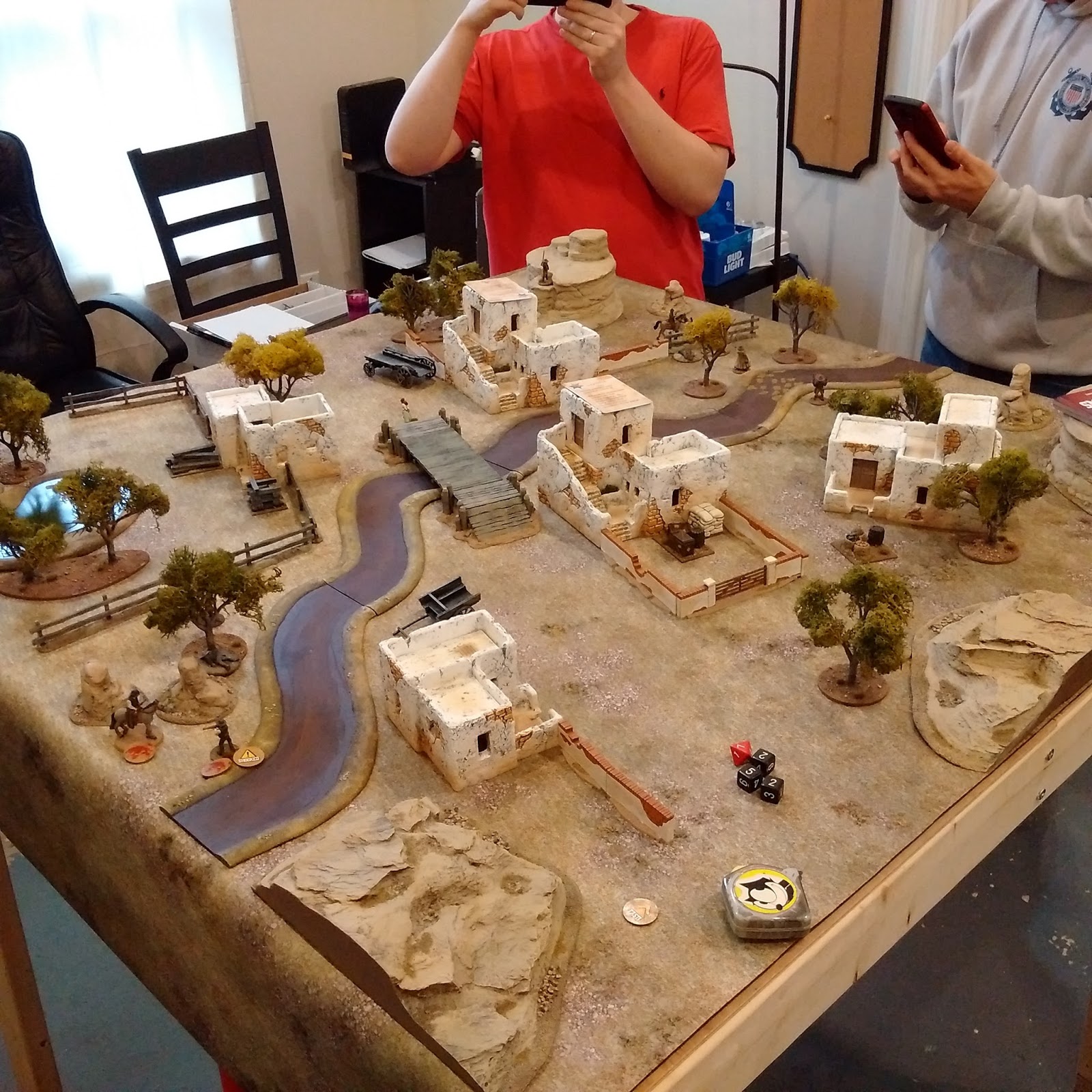 I was lucky enough to get in two games of Shoot N' Skedaddle this past Friday - both played in the adobe town terrain.